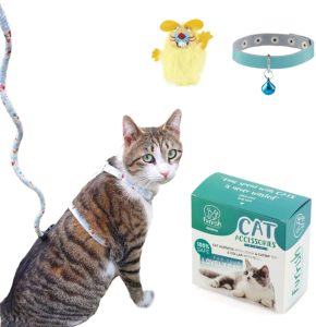 3. Harness with Leash, Leather Collar with Bell and Catnip Mouse Toy - Adjustable Escape Proof Buckle for Outdoor Walking– Bonus E-Book