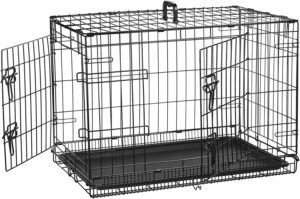 3. AmazonBasics Single-Door & Double- Door Folding Metal Dog or Pet Crate Kennel with Tray